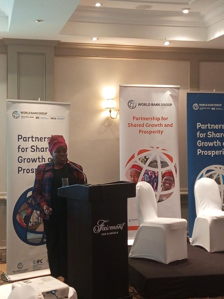 Precious Zikhali, a senior economist at the World Bank, makes her remarks during the launch of a World Bank report in Nairobi, the capital of Kenya, on Dec. 14, 2023. (Photo by Ronald Njoroge/Xinhua)
