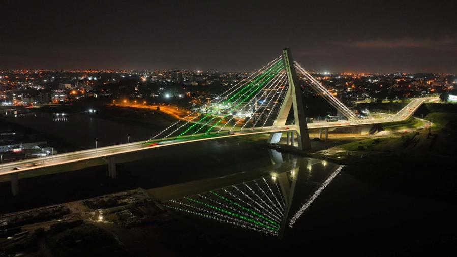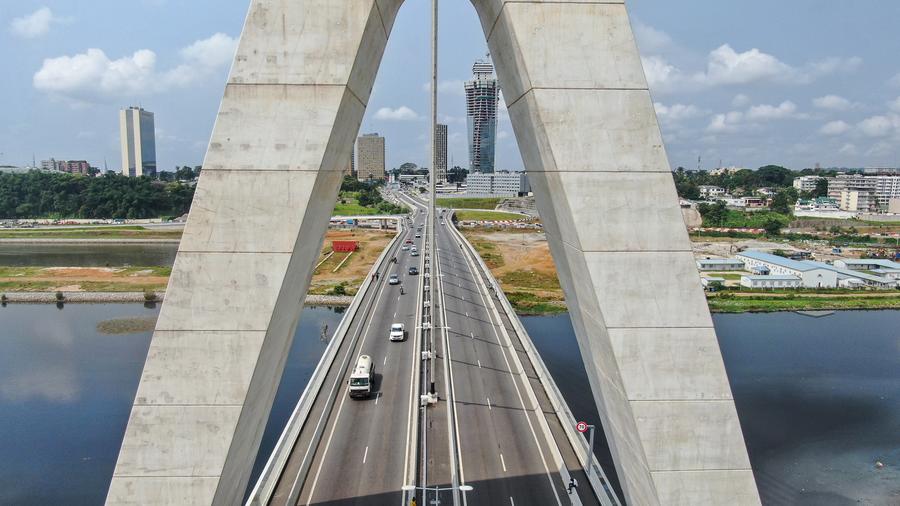 ABIDJAN, Jan. 10 (Xinhua) -- Spanning approximately 1.63 kilometers, the Cocody Bridge in Abidjan, the economic capital of Cote d'Ivoire was constructed by China Road and Bridge Corporation. A project aimed at improving people's livelihoods, the Cocody Bridge effectively reduces traffic congestion in downtown Abidjan, providing support for the city's traffic upgrading and renovation.