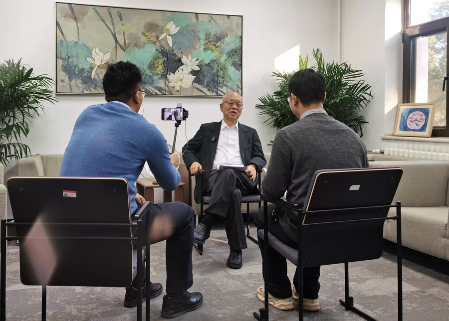 World-renowned mathematician Shing-Tung Yau speaks during an interview at Tsinghua University in Beijing, capital of China, Dec. 28, 2023. (Tsinghua University/Handout via Xinhua)