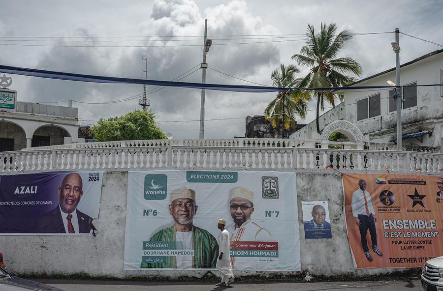 People participate in a pre-election rally in Moroni, capital of Comoros, Jan. 10, 2024. (Xinhua/Wang Guansen)People participate in a pre-election rally in Moroni, capital of Comoros, Jan. 10, 2024. (Xinhua/Wang Guansen)This photo taken on Jan. 10, 2024 shows a campaign billboard of the current president Azali Assoumani in Moroni, capital of Comoros. (Xinhua/Wang Guansen)A pedestrian passes election posters in Moroni, capital of Comoros, Jan. 12, 2024. (Xinhua/Wang Guansen)People participate in a pre-election rally in Moroni, capital of Comoros, Jan. 11, 2024. (Xinhua/Wang Guansen)People participate in a pre-election rally in Moroni, capital of Comoros, Jan. 11, 2024. (Xinhua/Wang Guansen)■