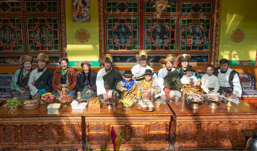 GLOBALink | Four-generation family celebrate first farmers' New Year in new house in Xigaze-Xinhua