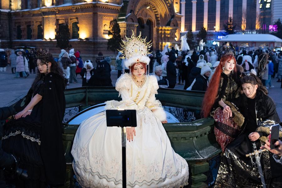 Tourists dressed up in costumes pose for photos in front of the St. Sophia Cathedral in Harbin, northeast China's Heilongjiang Province, Jan. 12, 2024. (Xinhua/Xie Jianfei)A tourist dressed up in costumes poses for photos in front of the St. Sophia Cathedral in Harbin, northeast China's Heilongjiang Province, Jan. 12, 2024. (Xinhua/Wang Jianwei)Tourists dressed up in costumes pose for photos in front of the St. Sophia Cathedral in Harbin, northeast China's Heilongjiang Province, Jan. 12, 2024. (Xinhua/Xie Jianfei)A tourist dressed up in costumes poses for photos in front of the St. Sophia Cathedral in Harbin, northeast China's Heilongjiang Province, Jan. 11, 2024. (Xinhua/Wang Jianwei)A tourist dressed up in costumes poses for photos in front of the St. Sophia Cathedral in Harbin, northeast China's Heilongjiang Province, Jan. 12, 2024. (Xinhua/Xie Jianfei)A tourist dressed up in costumes poses for photos in front of the St. Sophia Cathedral in Harbin, northeast China's Heilongjiang Province, Jan. 12, 2024. (Xinhua/Xie Jianfei)