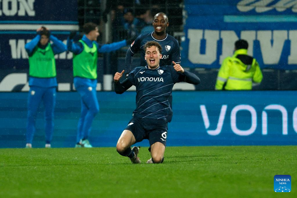 Patrick Osterhage of VfL Bochum celebrates after scoring during the Bundesliga match between VfL Bochum and SV Werder Bremen in Bochum, Germany, Jan. 14, 2024. (Photo by Joachim Bywaletz/Xinhua)