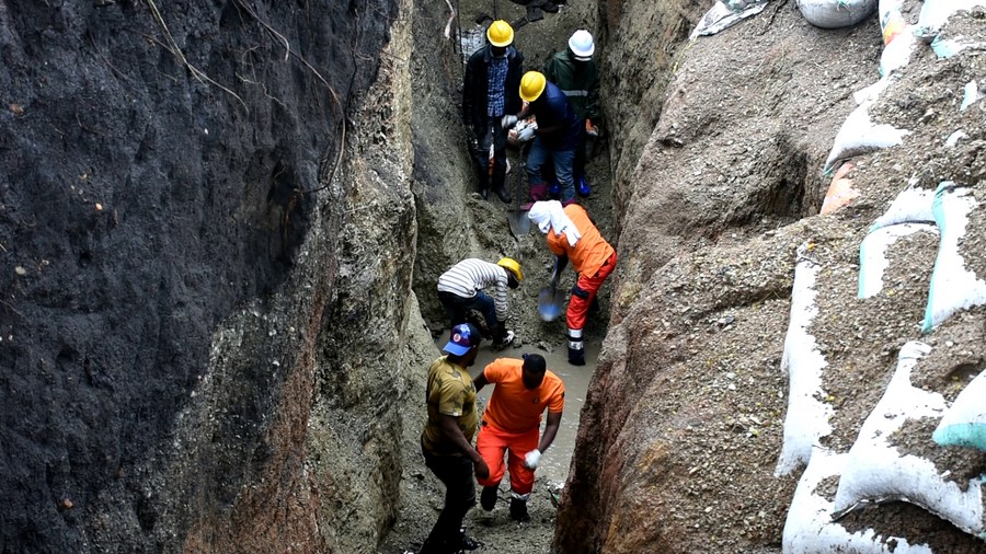 Rescuers search for survivors at a gold mine after it collapsed following a heavy downpour in Simiyu region, Tanzania, Jan. 14, 2024. (Xinhua)