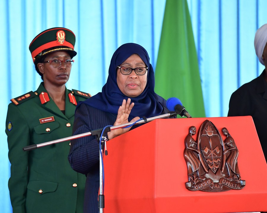 Tanzanian President Samia Suluhu Hassan (Front) delivers a speech in Dodoma, capital of Tanzania, on March 31, 2021. (Tanzanian State House/Handout via Xinhua)