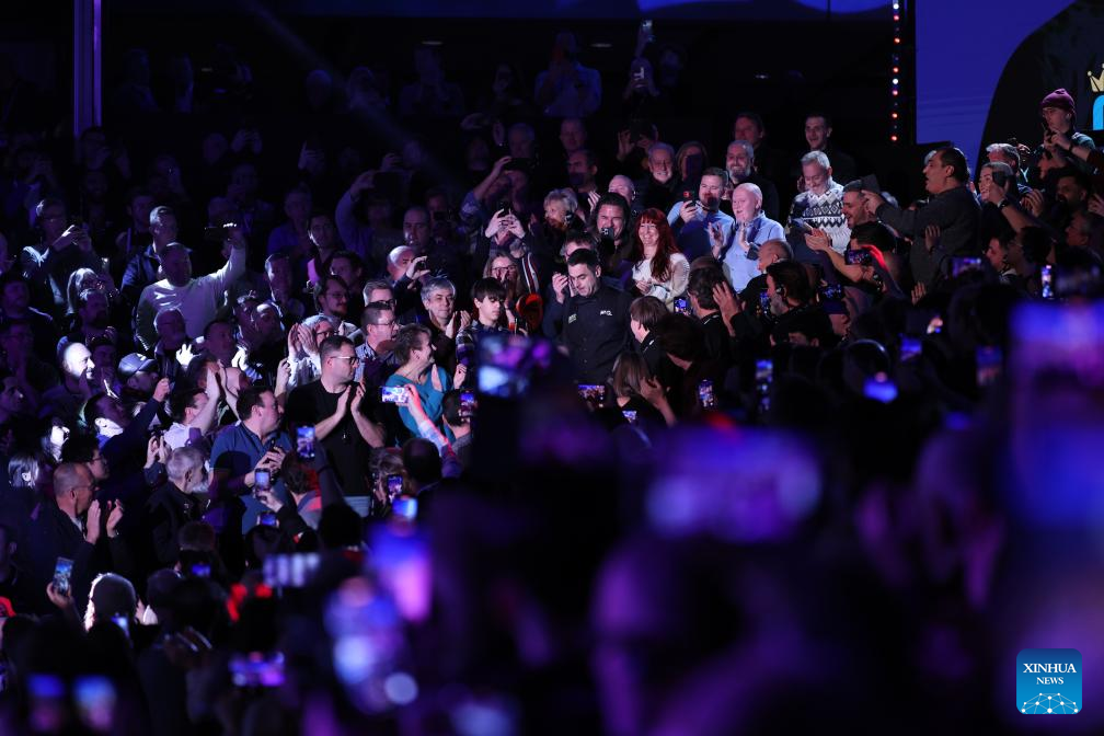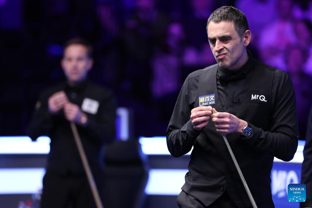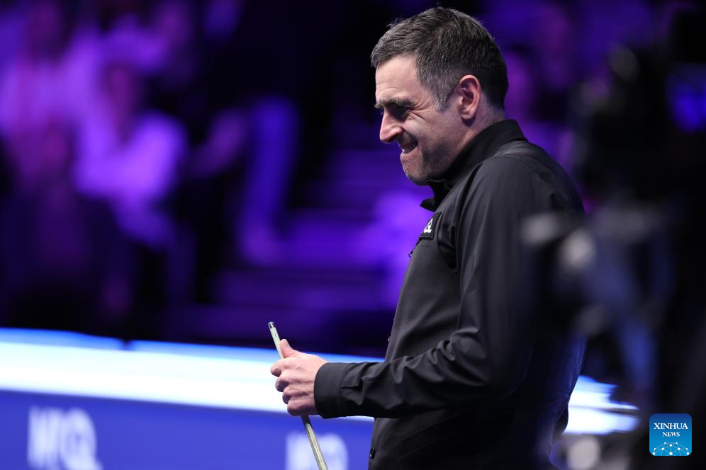 Ronnie O'Sullivan of England enters the court ahead of the final match between Ronnie O'Sullivan and Ali Carter of England at Snooker Masters 2024 in London, Britain, Jan. 14, 2024. (Photo by Zhai Zheng/Xinhua)