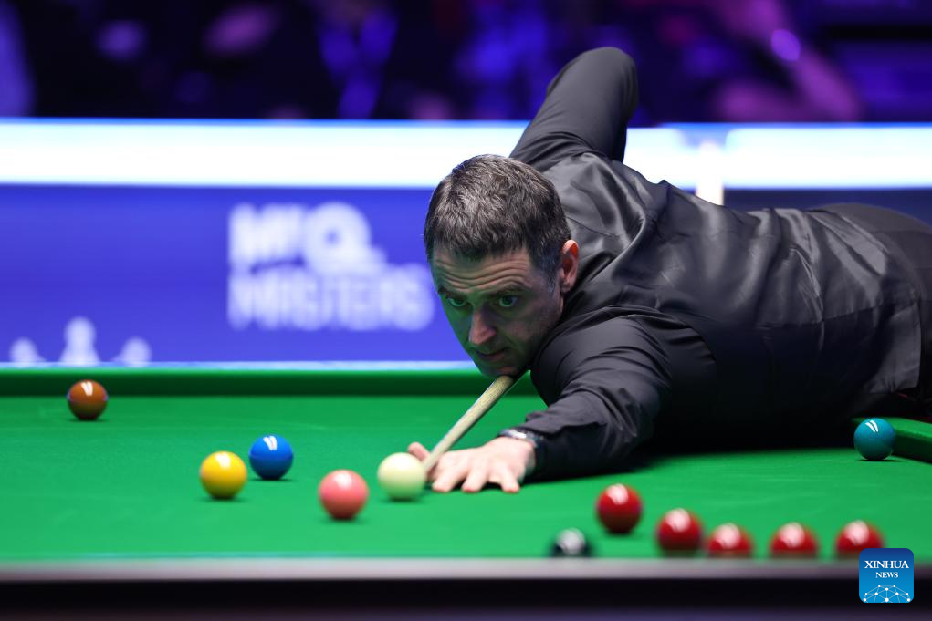 Ronnie O'Sullivan of England competes during the final match between Ronnie O'Sullivan and Ali Carter of England at Snooker Masters 2024 in London, Britain, Jan. 14, 2024. (Photo by Zhai Zheng/Xinhua)
