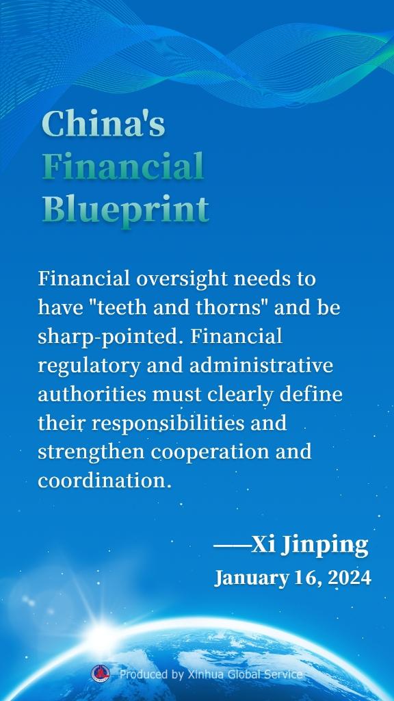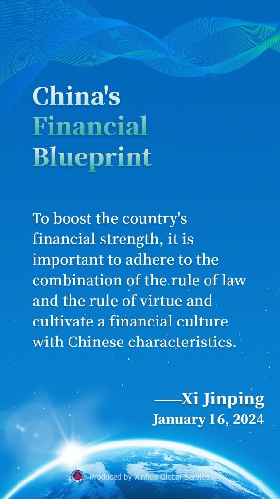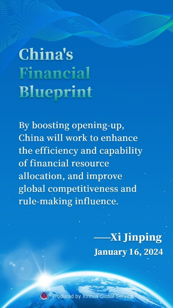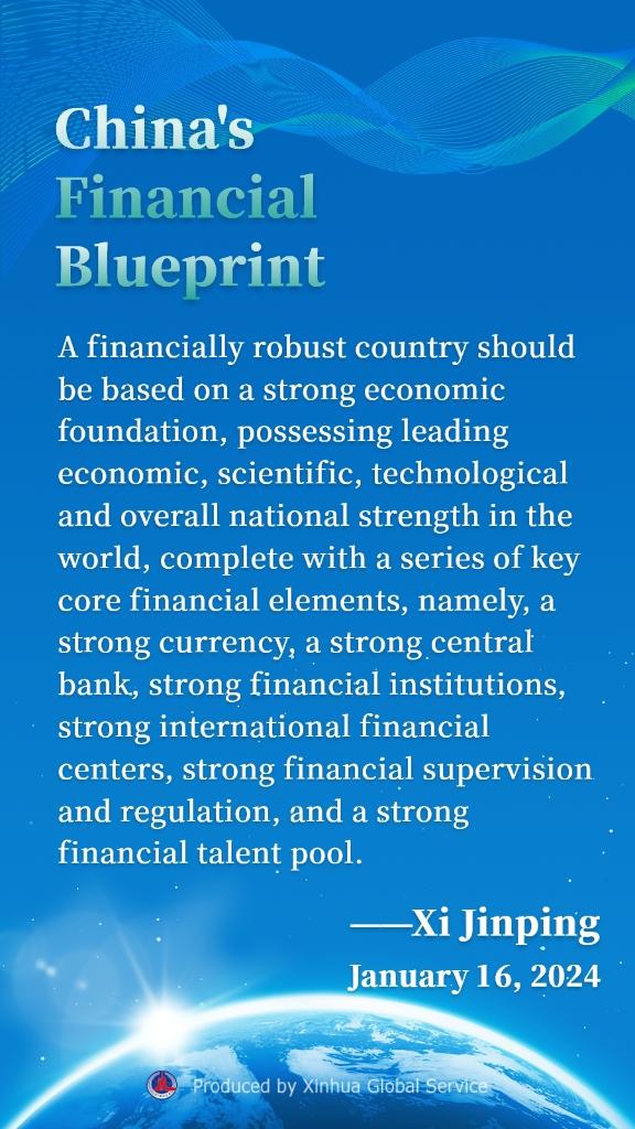 BEIJING, Jan. 17 (Xinhua) -- Chinese President Xi Jinping has urged pursuing the path of financial development with Chinese characteristics and boosting the high-quality development of the financial sector during the opening of a study session at the Party School of the Communist Party of China Central Committee (National Academy of Governance).