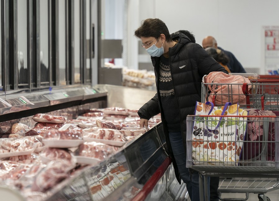 People shop at a supermarket in Foster City, California, the United States, Jan. 11, 2024. (Photo by Li Jianguo/Xinhua)