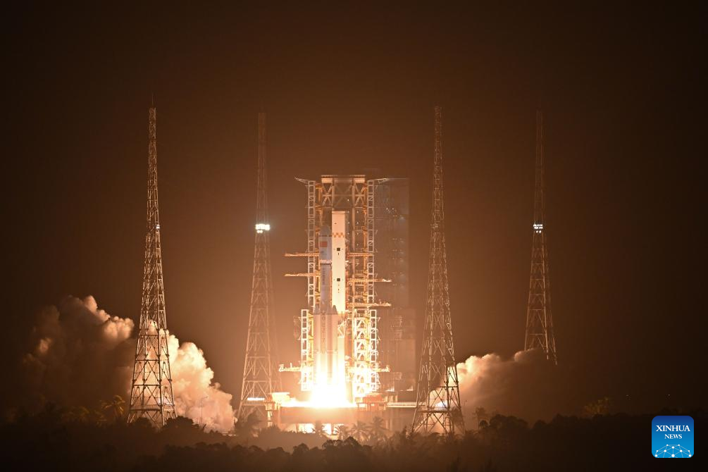 China launched cargo spacecraft Tianzhou-7 on Wednesday night to deliver supplies for its orbiting Tiangong space station, according to the China Manned Space Agency (CMSA). (Xinhua/Liu Jinhai)