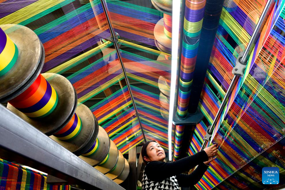 A woman works at an enterprise producing net and rope products in Lizhuang Town of Huimin County, east China's Shandong Province, Nov. 22, 2023.