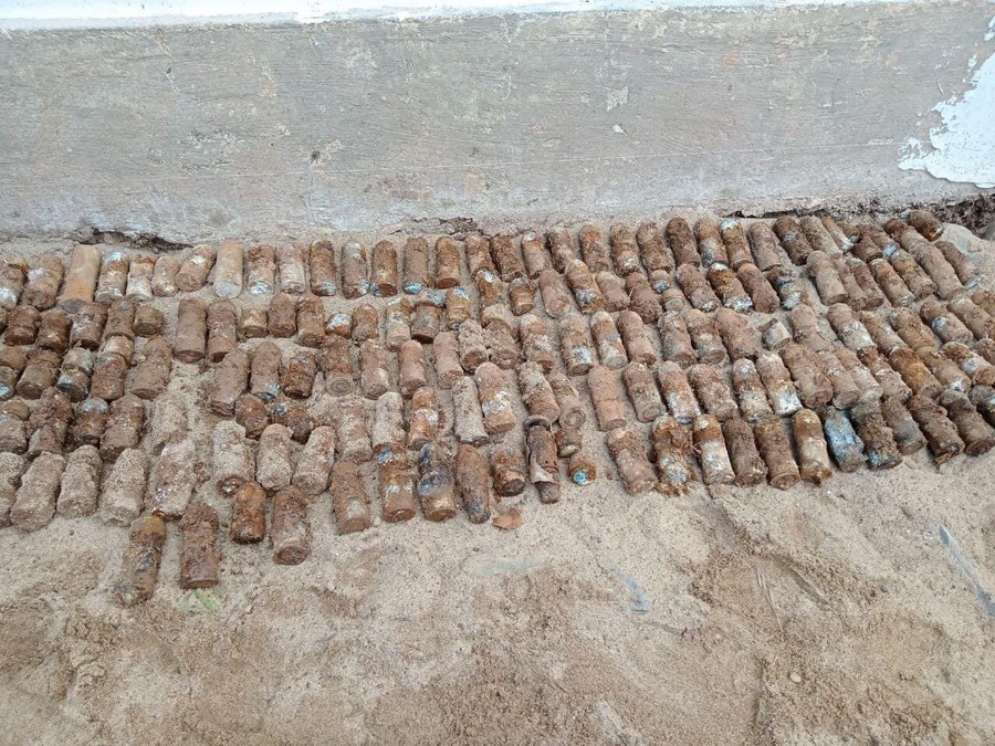This photo taken on Aug. 13, 2023 shows a mass of war-era unexploded ordnance unearthed from the grounds of a high school in Kratie province, Cambodia. (CMAC/Handout via Xinhua)