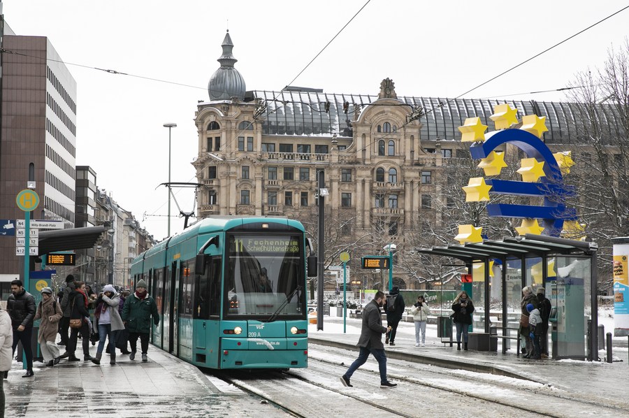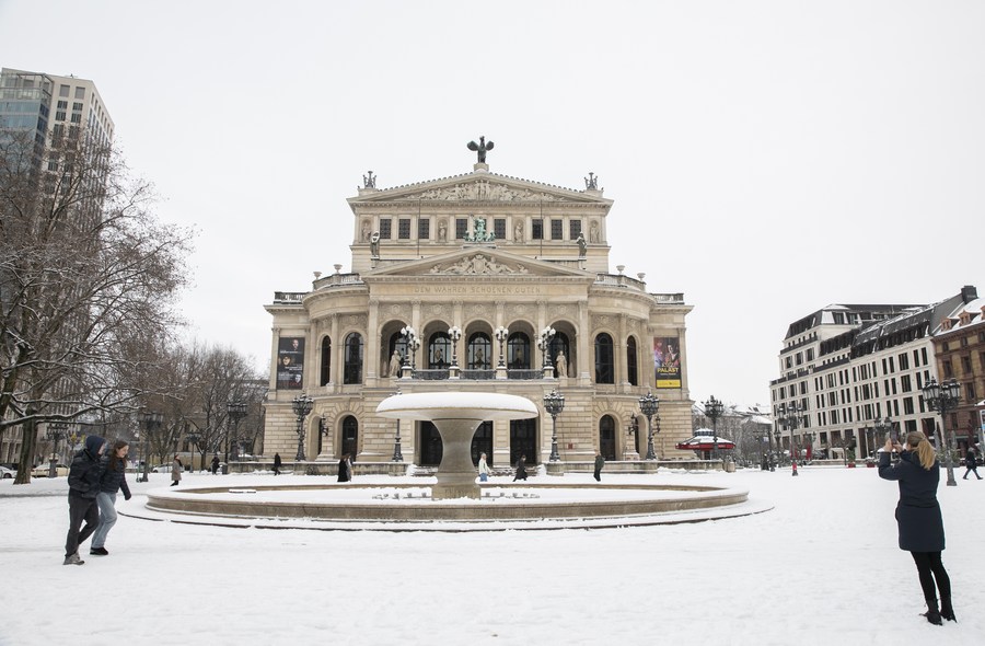 People are seen in front of the Alte Oper in Frankfurt, Germany, Jan. 18, 2024. (Xinhua/Zhang Fan)
