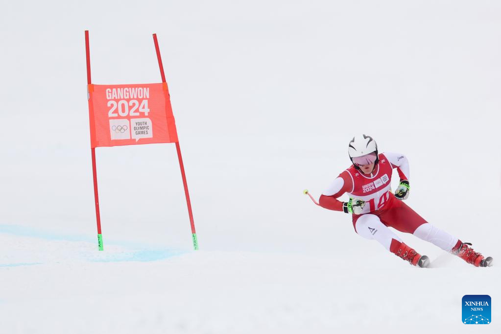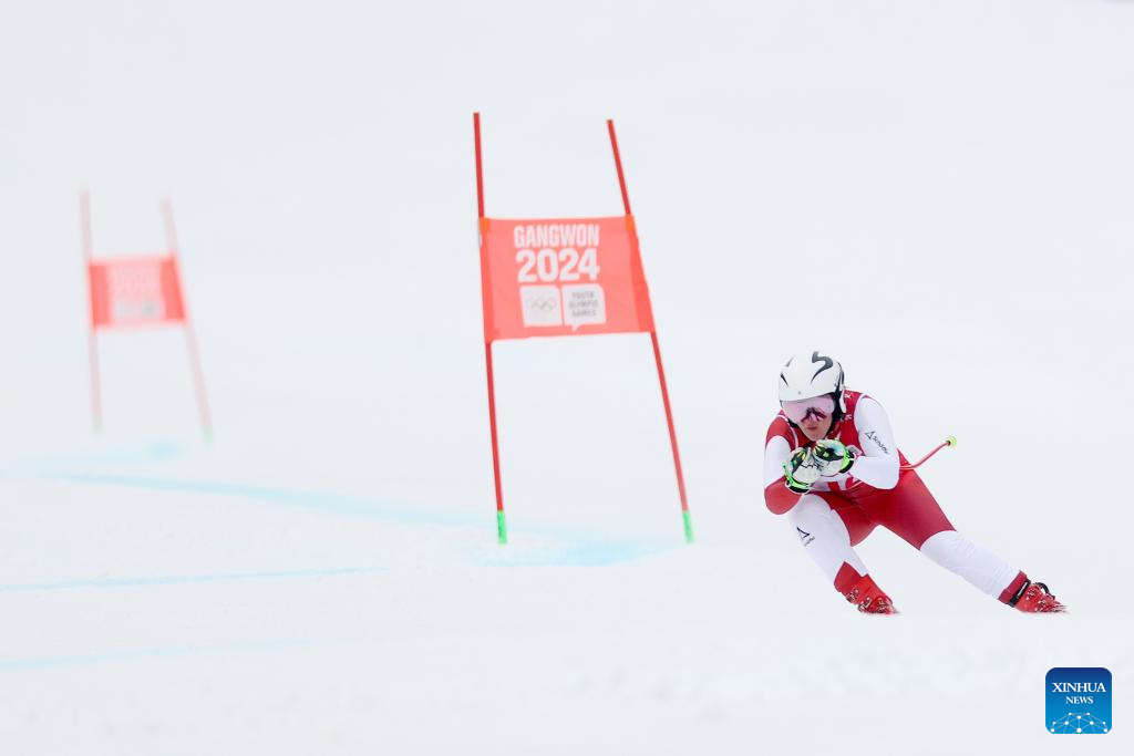 Eva Schachner of Austria competes during the Women's Super-G of Alpine Skiing event at the Gangwon 2024 Winter Youth Olympic Games in Jeongseon, South Korea, Jan. 21, 2024. (Xinhua/Li Ming)