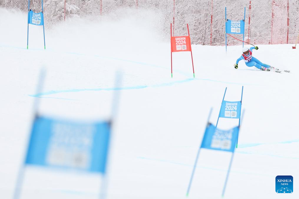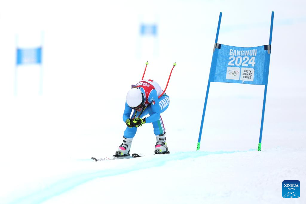 Camilla Vanni of Italy competes during the Women's Super-G of Alpine Skiing event at the Gangwon 2024 Winter Youth Olympic Games in Jeongseon, South Korea, Jan. 21, 2024. (Xinhua/Li Ming)