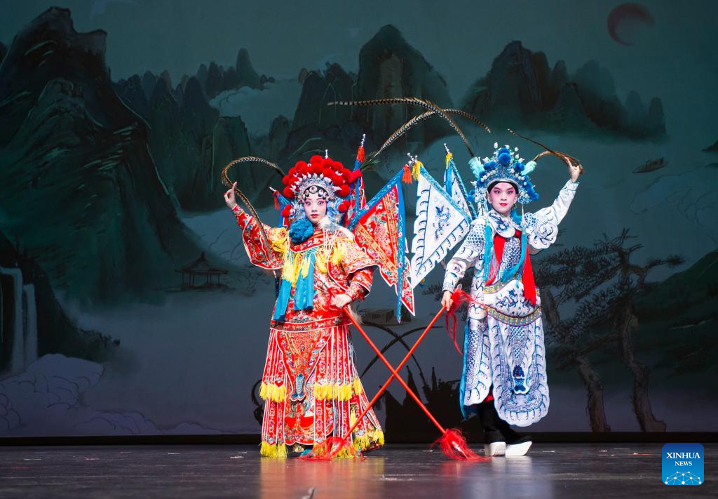 Dressed-up actors perform during the 2024 Happy Spring Festival Chinese Opera New Year Gala in Richmond Hill, Ontario, Canada, on Jan. 21, 2024. Hosted by Canada Chinese Opera Arts Center, this event was held here on Sunday to celebrate the upcoming Chinese Lunar New Year of the Dragon. (Photo by Zou Zheng/Xinhua)