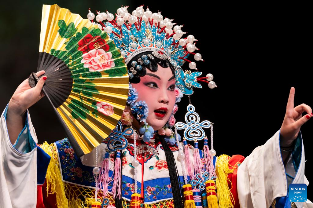 A dressed-up actress performs during the 2024 Happy Spring Festival Chinese Opera New Year Gala in Richmond Hill, Ontario, Canada, on Jan. 21, 2024. Hosted by Canada Chinese Opera Arts Center, this event was held here on Sunday to celebrate the upcoming Chinese Lunar New Year of the Dragon. (Photo by Zou Zheng/Xinhua)