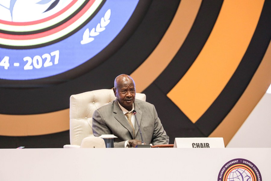 Yoweri Museveni, Ugandan president and incoming chair of the Non-Aligned Movement (NAM), addresses the opening ceremony of the 19th Summit of Heads of State and Government of the Non-Aligned Movement in Kampala, Uganda, on Jan. 19, 2024. (Photo by Hajarah Nalwadda/Xinhua)