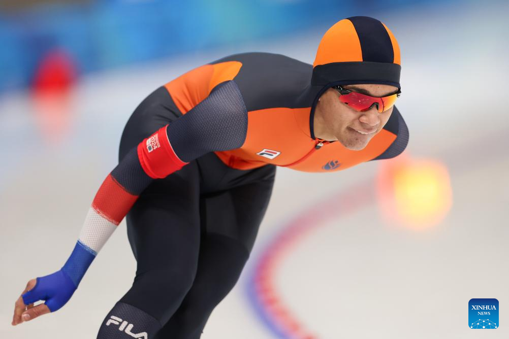 Geophrey Coenraad of the Netherlands competes during the men's 1500m Final of speed skating event at the Gangwon 2024 Winter Youth Olympic Games in Gangneung, South Korea, Jan. 23, 2024. (Xinhua/Xu Yanan)