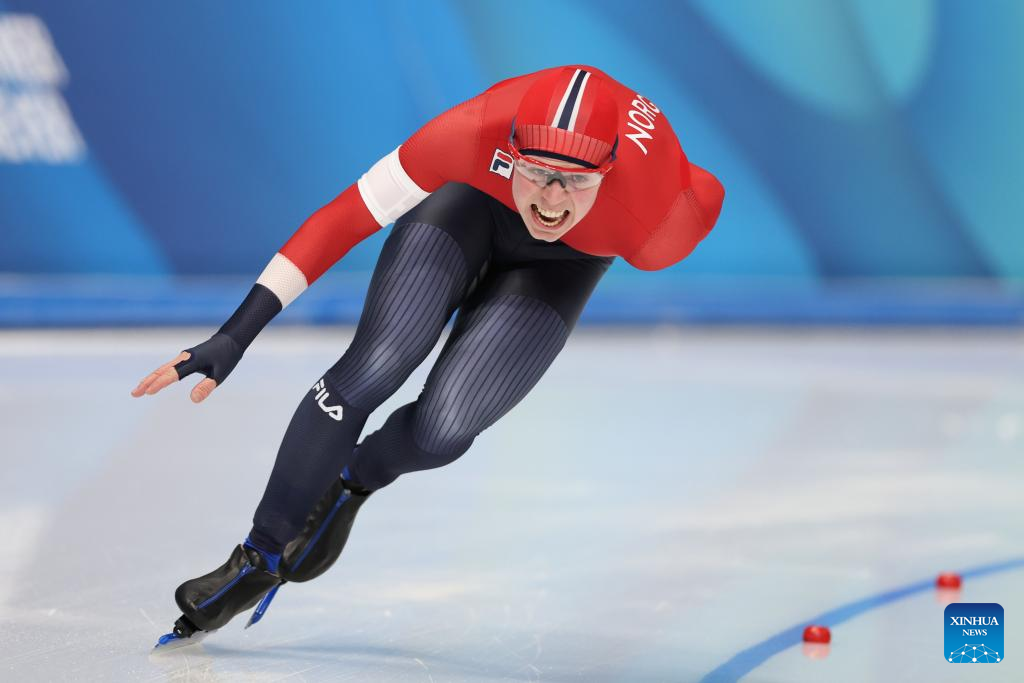 Eirik Andersen of Norway competes during the men's 1500m Final of speed skating event at the Gangwon 2024 Winter Youth Olympic Games in Gangneung, South Korea, Jan. 23, 2024. (Xinhua/Xu Yanan)