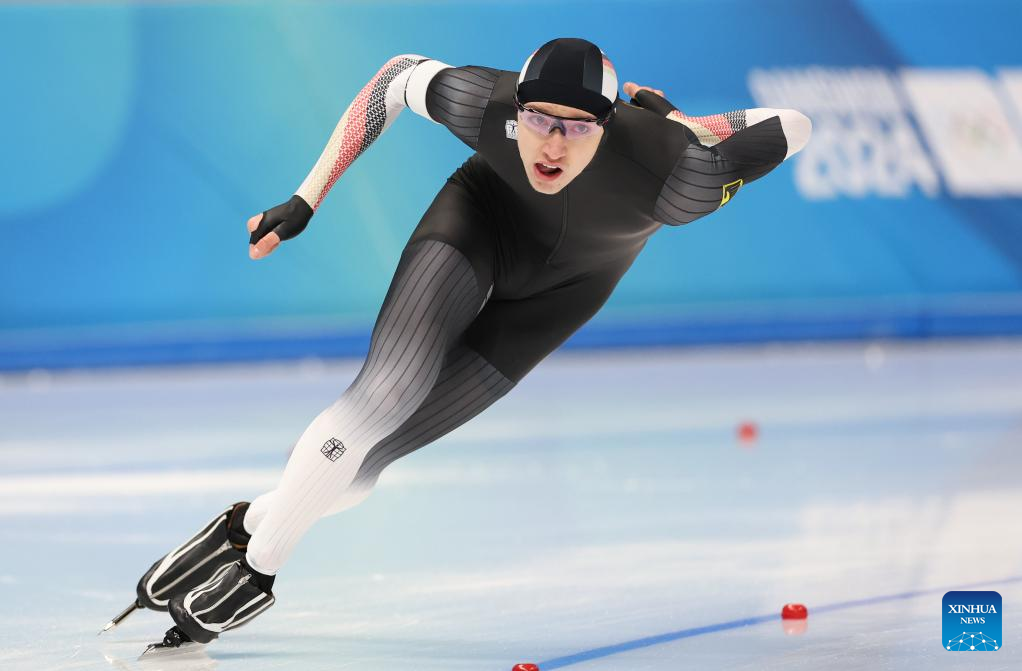 Finn Sonnekalb of Germany competes during the men's 1500m Final of speed skating event at the Gangwon 2024 Winter Youth Olympic Games in Gangneung, South Korea, Jan. 23, 2024. (Xinhua/Xu Yanan)