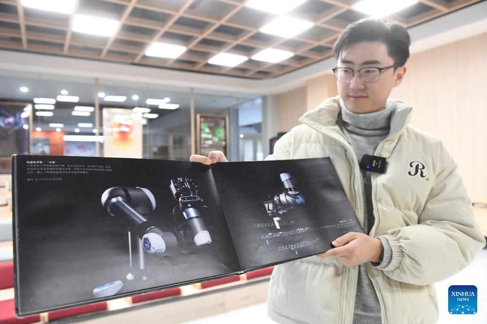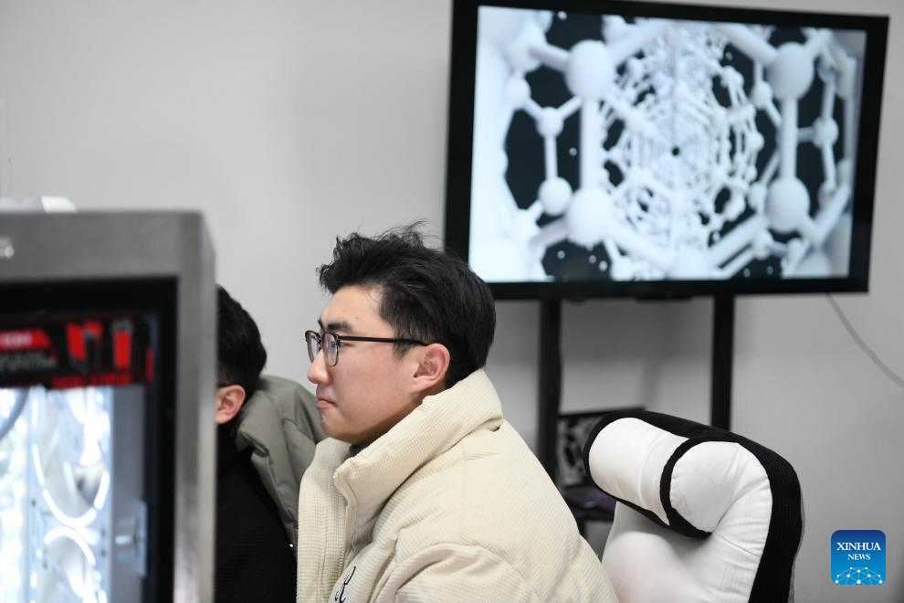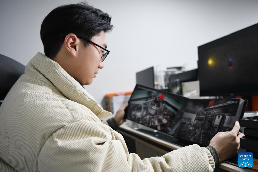 Yang Yuanfan shows scientific visualization products created by his company in Hefei, east China's Anhui Province, Jan. 18, 2024.