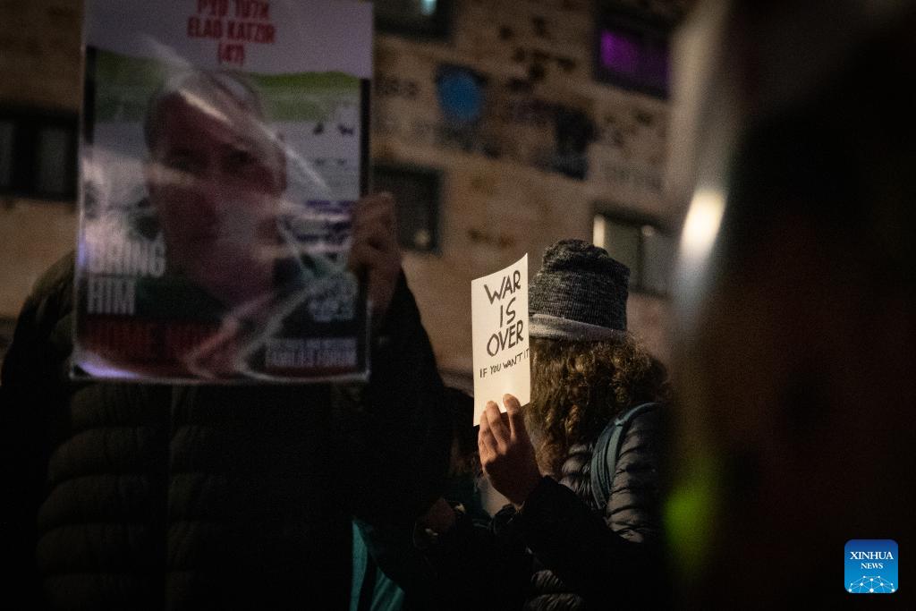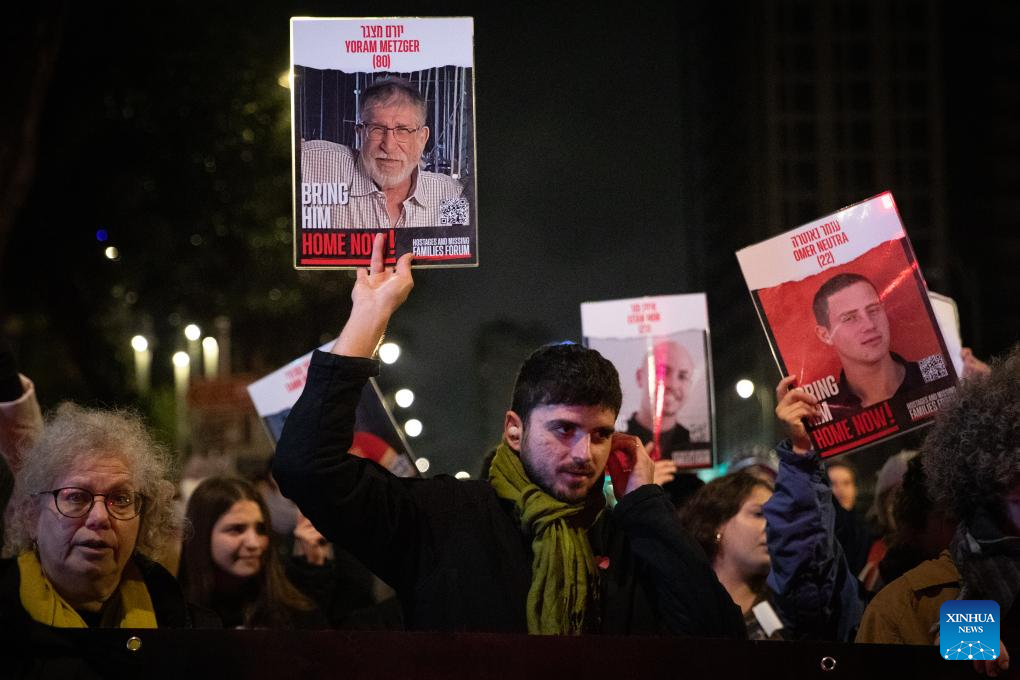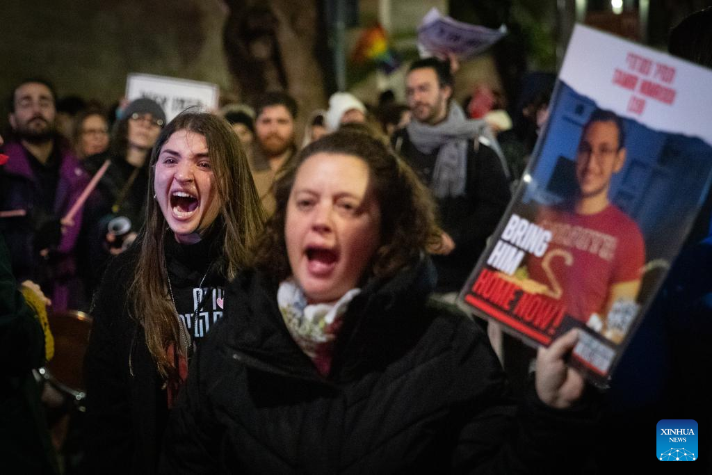 JERUSALEM, Jan. 24 (Xinhua) -- Thousands of Israeli women took to the streets across the country on Wednesday, urging their government to sign a ceasefire deal for the release of hostages held in Gaza.