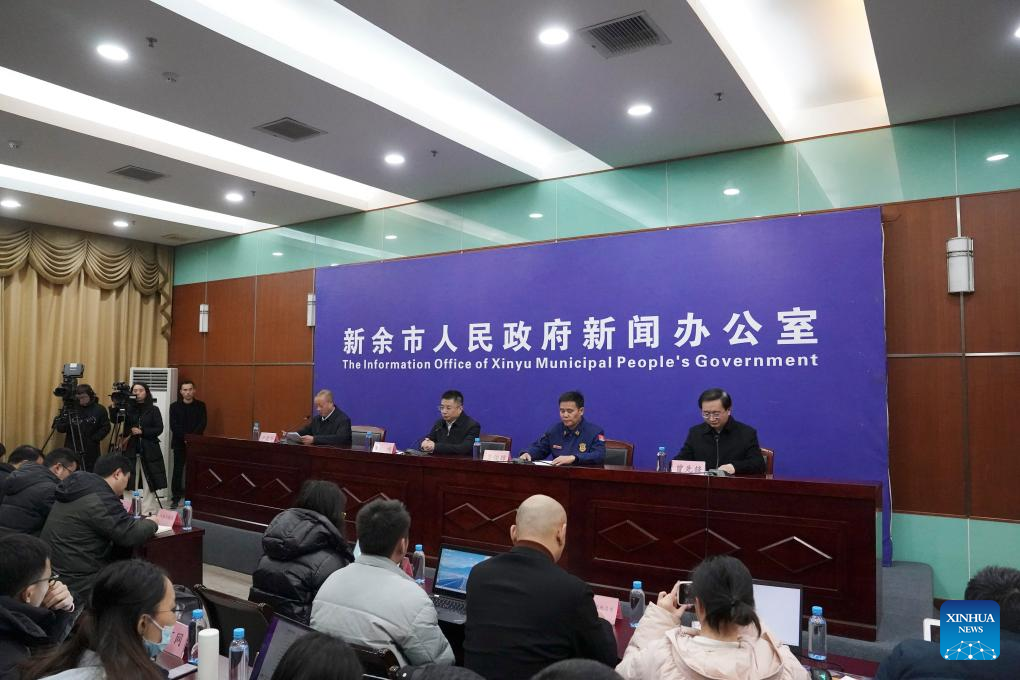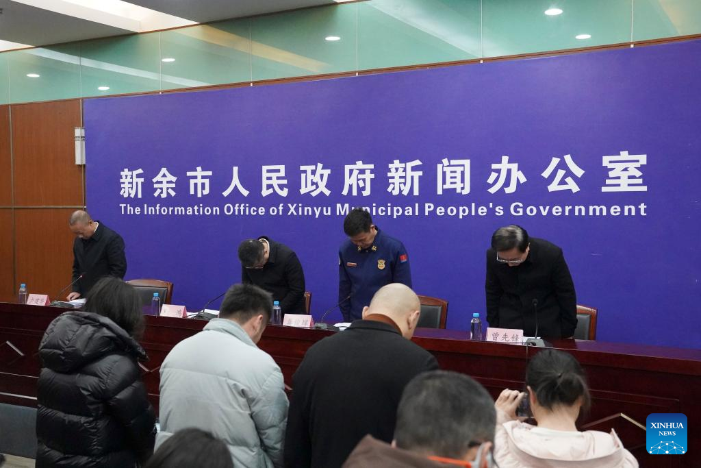 This photo taken on Jan. 25, 2024 shows a scene at the press conference on a building fire in Xinyu, east China's Jiangxi Province.