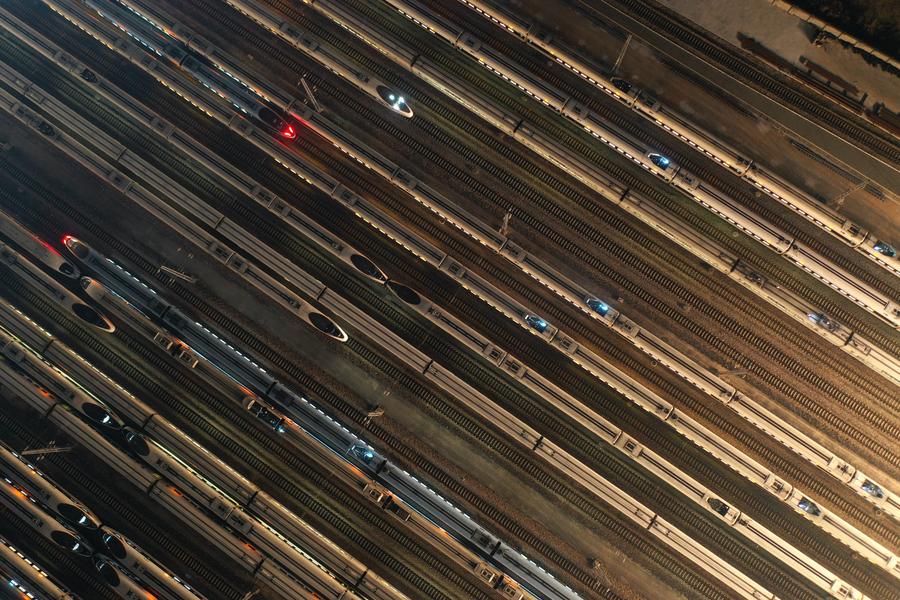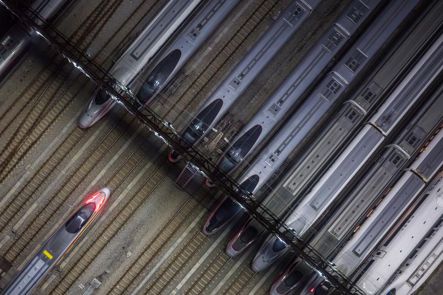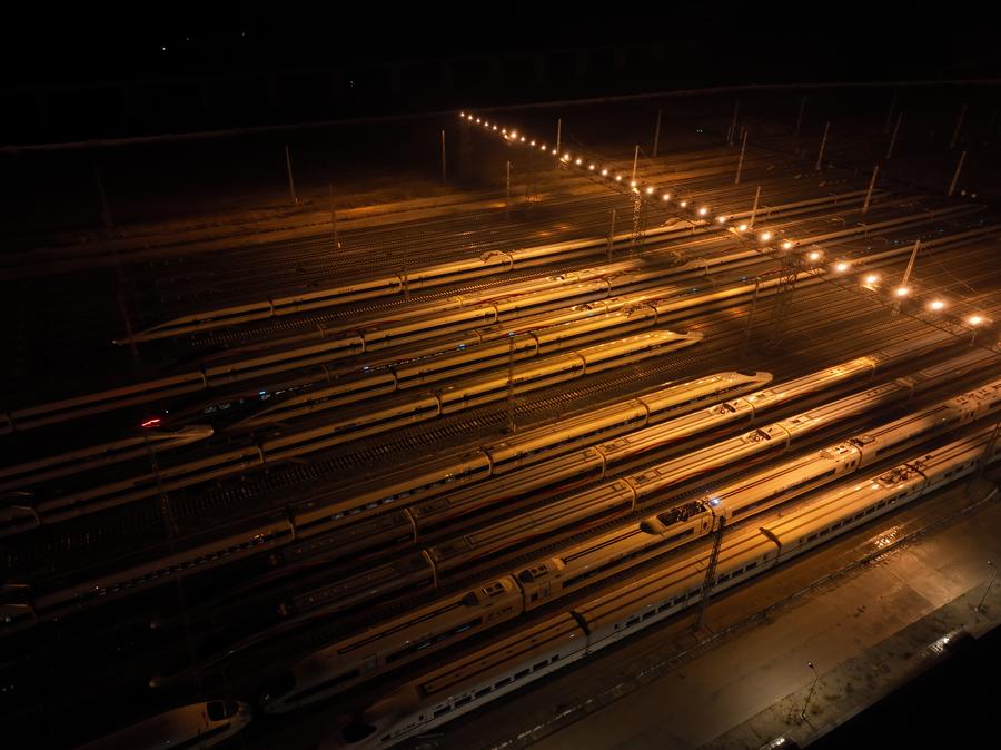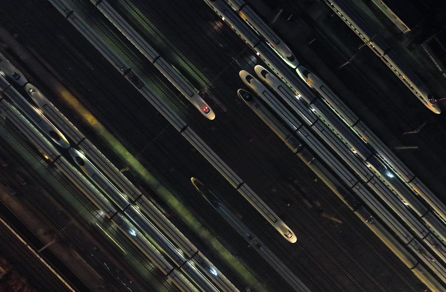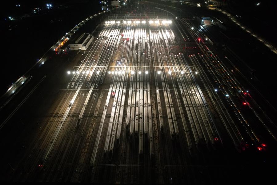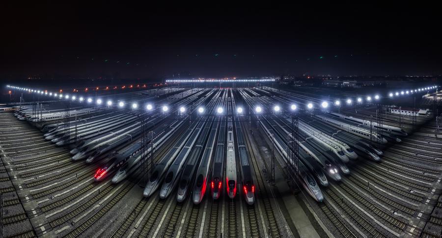 An aerial drone photo taken on Jan. 26, 2024 shows bullet trains at a maintenance base in Kunming, southwest China's Yunnan Province. (Photo by Zhang Zhengju/Xinhua)An aerial drone photo taken on Jan. 26, 2024 shows bullet trains at a maintenance base in Nanjing, east China's Jiangsu Province. (Photo by Yang Suping/Xinhua)An aerial drone photo taken on Jan. 26, 2024 shows bullet trains at a maintenance base in Guangzhou, south China's Guangdong Province. (Xinhua/Deng Hua)An aerial drone photo taken on Jan. 26, 2024 shows bullet trains at a maintenance base in Nanchang, east China's Jiangxi Province. (Xinhua/Wan Xiang)This photo taken on Jan. 26, 2024 shows bullet trains at a maintenance base in Guangzhou, south China's Guangdong Province. (Xinhua/Deng Hua)A mechanic checks a bullet train at a maintenance base in Changsha, central China's Hunan Province, Jan. 25, 2024. (Xinhua/Chen Sihan)A robot checks a bullet train at a maintenance base in Changsha, central China's Hunan Province, Jan. 25, 2024. (Xinhua/Chen Sihan)An aerial drone photo taken on Jan. 26, 2024 shows bullet trains at a maintenance base in Nanjing, east China's Jiangsu Province. (Photo by Fang Dongxu/Xinhua)An aerial drone photo taken on Jan. 26, 2024 shows bullet trains at a maintenance base in Changsha, central China's Hunan Province. (Xinhua/Chen Sihan)An aerial drone photo taken on Jan. 26, 2024 shows bullet trains at a maintenance base in Nanchang, east China's Jiangxi Province. (Xinhua/Wan Xiang)An aerial drone photo taken on Jan. 26, 2024 shows bullet trains at a maintenance base in Guangzhou, south China's Guangdong Province. (Xinhua/Deng Hua)This photo taken on Jan. 26, 2024 shows bullet trains at a maintenance base in Changsha, central China's Hunan Province. (Xinhua/Chen Zhenhai)Mechanics work at a bullet train maintenance base in Wuhan, central China's Hubei Province, Jan. 25, 2024. (Xinhua/Du Zixuan)A mechanic checks a bullet train at a maintenance base in Wuhan, central China's Hubei Province, Jan. 26, 2024. (Xinhua/Wu Zhizun)An aerial drone photo taken on Jan. 26, 2024 shows bullet trains at a maintenance base in Wuhan, central China's Hubei Province. (Xinhua/Wu Zhizun)An aerial drone photo taken on Jan. 26, 2024 shows bullet trains at a maintenance base in Nanchang, east China's Jiangxi Province. (Xinhua/Wan Xiang)An aerial drone photo taken on Jan. 26, 2024 shows bullet trains at a maintenance base in Fuzhou, southeast China's Fujian Province. (Xinhua/Zhou Yi)■