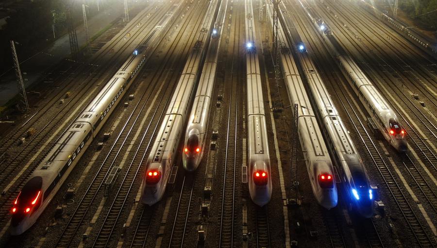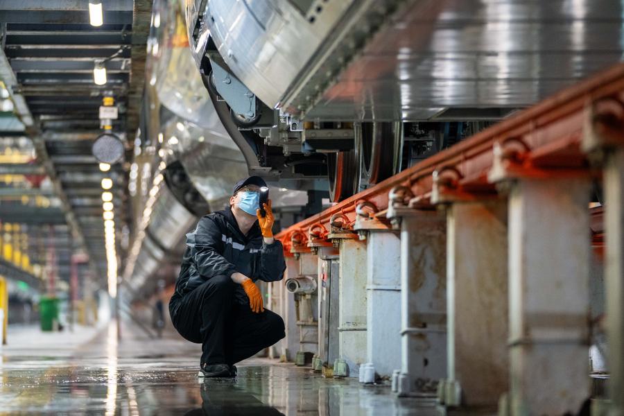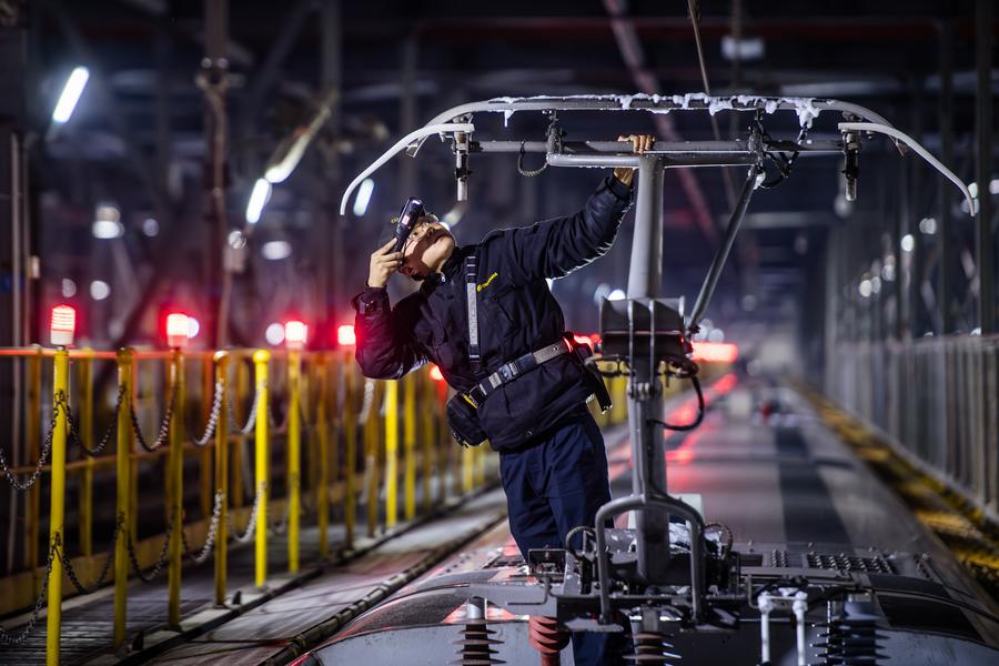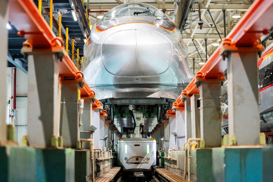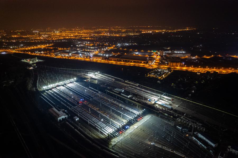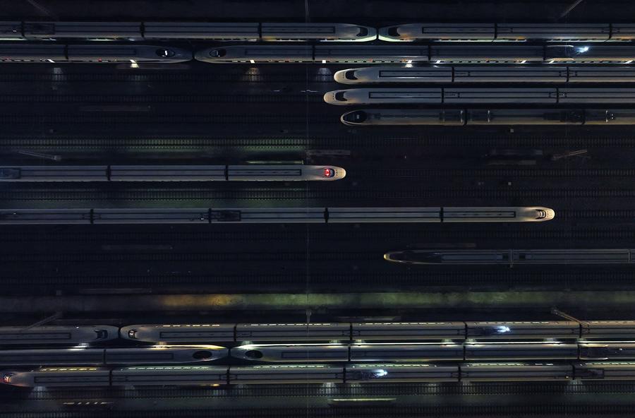 An aerial drone photo taken on Jan. 26, 2024 shows bullet trains at a maintenance base in Kunming, southwest China's Yunnan Province. (Photo by Zhang Zhengju/Xinhua)An aerial drone photo taken on Jan. 26, 2024 shows bullet trains at a maintenance base in Nanjing, east China's Jiangsu Province. (Photo by Yang Suping/Xinhua)An aerial drone photo taken on Jan. 26, 2024 shows bullet trains at a maintenance base in Guangzhou, south China's Guangdong Province. (Xinhua/Deng Hua)An aerial drone photo taken on Jan. 26, 2024 shows bullet trains at a maintenance base in Nanchang, east China's Jiangxi Province. (Xinhua/Wan Xiang)This photo taken on Jan. 26, 2024 shows bullet trains at a maintenance base in Guangzhou, south China's Guangdong Province. (Xinhua/Deng Hua)A mechanic checks a bullet train at a maintenance base in Changsha, central China's Hunan Province, Jan. 25, 2024. (Xinhua/Chen Sihan)A robot checks a bullet train at a maintenance base in Changsha, central China's Hunan Province, Jan. 25, 2024. (Xinhua/Chen Sihan)An aerial drone photo taken on Jan. 26, 2024 shows bullet trains at a maintenance base in Nanjing, east China's Jiangsu Province. (Photo by Fang Dongxu/Xinhua)An aerial drone photo taken on Jan. 26, 2024 shows bullet trains at a maintenance base in Changsha, central China's Hunan Province. (Xinhua/Chen Sihan)An aerial drone photo taken on Jan. 26, 2024 shows bullet trains at a maintenance base in Nanchang, east China's Jiangxi Province. (Xinhua/Wan Xiang)An aerial drone photo taken on Jan. 26, 2024 shows bullet trains at a maintenance base in Guangzhou, south China's Guangdong Province. (Xinhua/Deng Hua)This photo taken on Jan. 26, 2024 shows bullet trains at a maintenance base in Changsha, central China's Hunan Province. (Xinhua/Chen Zhenhai)Mechanics work at a bullet train maintenance base in Wuhan, central China's Hubei Province, Jan. 25, 2024. (Xinhua/Du Zixuan)A mechanic checks a bullet train at a maintenance base in Wuhan, central China's Hubei Province, Jan. 26, 2024. (Xinhua/Wu Zhizun)An aerial drone photo taken on Jan. 26, 2024 shows bullet trains at a maintenance base in Wuhan, central China's Hubei Province. (Xinhua/Wu Zhizun)An aerial drone photo taken on Jan. 26, 2024 shows bullet trains at a maintenance base in Nanchang, east China's Jiangxi Province. (Xinhua/Wan Xiang)An aerial drone photo taken on Jan. 26, 2024 shows bullet trains at a maintenance base in Fuzhou, southeast China's Fujian Province. (Xinhua/Zhou Yi)■