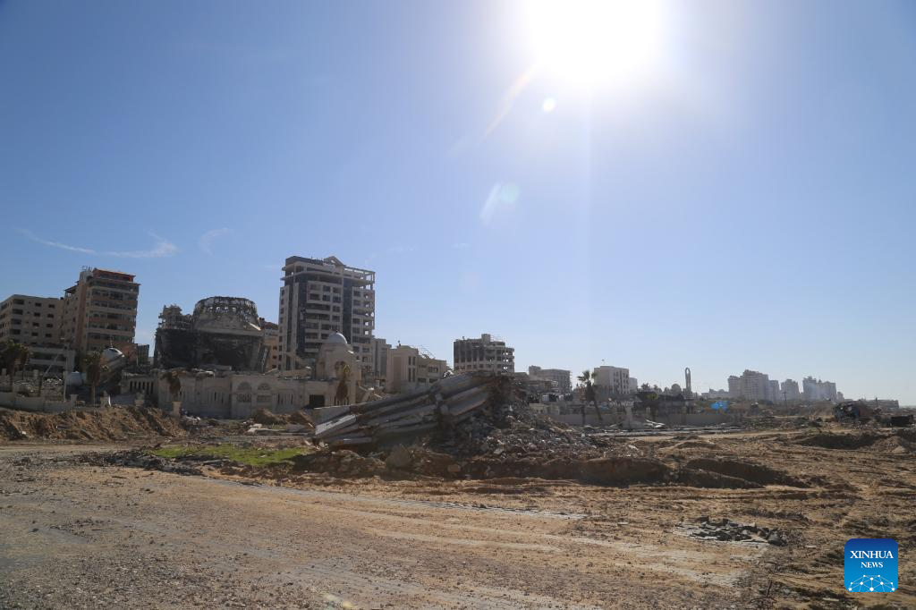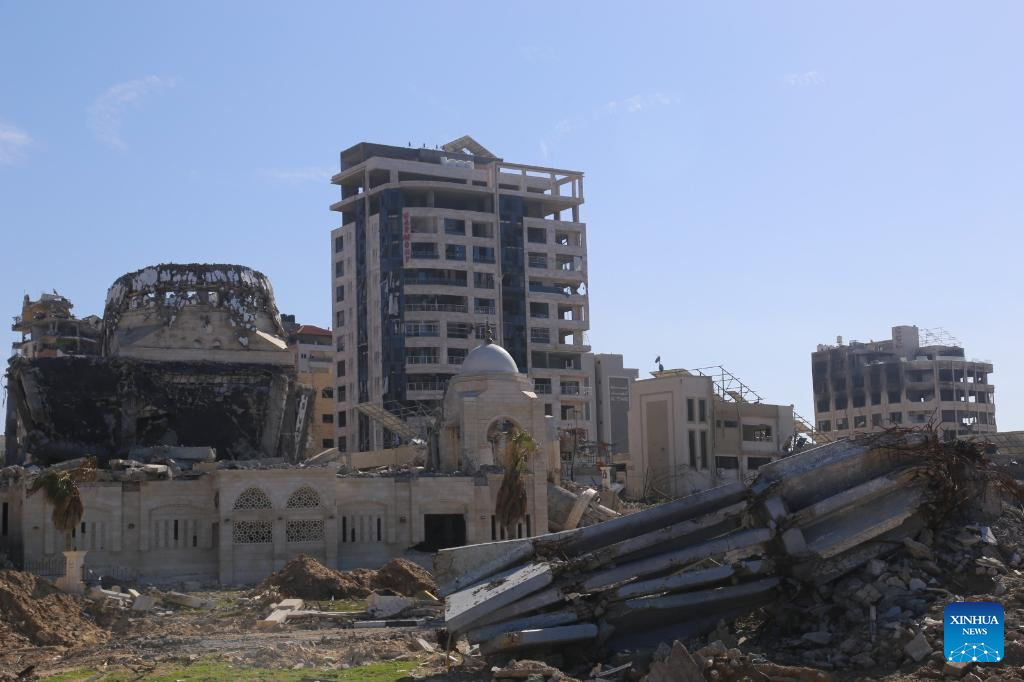 Photo taken on Jan. 25, 2024 shows destroyed buildings at Maghazi refugee camp in central Gaza Strip. The Palestinian death toll from the ongoing Israeli attacks on the Gaza Strip has risen to 25,900 since Oct. 7, 2023, the Hamas-run Health Ministry said on Thursday. (Xinhua)