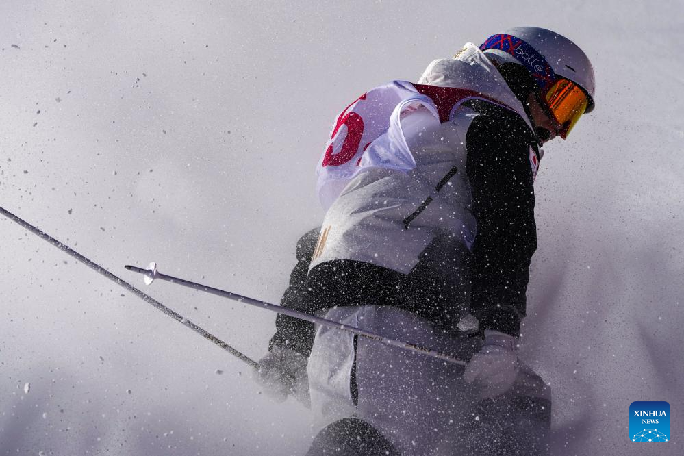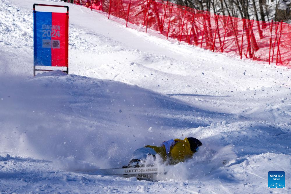 Long Hao of China competes during the 1/8 Final of the Mixed Team Dual Moguls of Freestyle Skiing at the Gangwon 2024 Winter Youth Olympic Games in Jeongseon, South Korea, Jan. 26, 2024. (Xinhua/Zhang Xiaoyu)