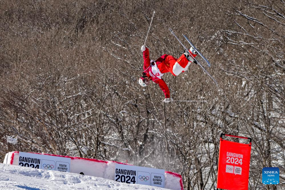 Lottie Lodge of Australia competes during the Quarterfinal of the Mixed Team Dual Moguls of Freestyle Skiing at the Gangwon 2024 Winter Youth Olympic Games in Jeongseon, South Korea, Jan. 26, 2024. (Xinhua/Zhang Xiaoyu)
