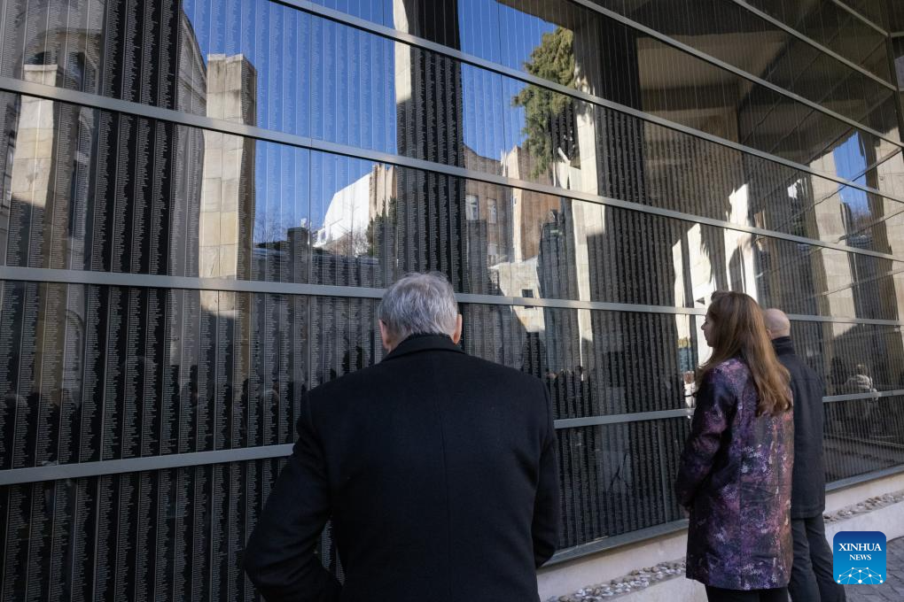 People visit the Holocaust Memorial Center in Budapest, Hungary on Jan. 26, 2024, a day ahead of International Holocaust Remembrance Day. (Photo by Attila Volgyi/Xinhua)