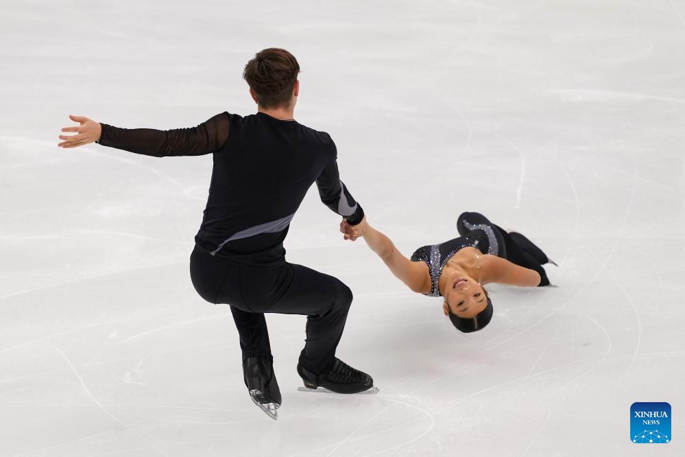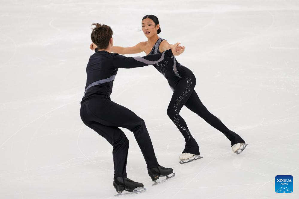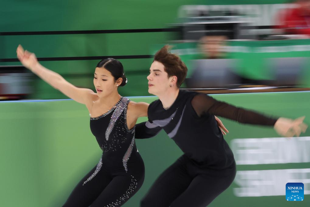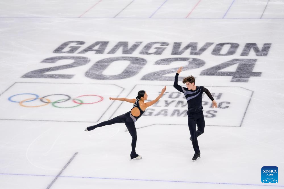 Cayla Smith (R) and Jared McPike of the United States compete during the pair skating short program of figure skating event at the Gangwon 2024 Winter Youth Olympic Games in Gangneung, South Korea, Jan. 27, 2024. (Xinhua/Zhang Xiaoyu)