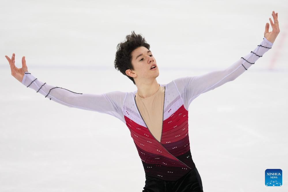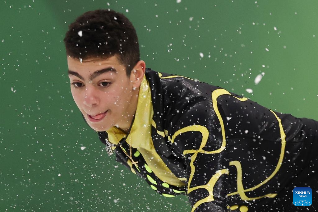 Jacob Sanchez of the United States performs during the Men's Single Skating Short Program of figure skating event at the Gangwon 2024 Winter Youth Olympic Games in Gangneung, South Korea, Jan. 27, 2024. (Xinhua/Xu Yanan)