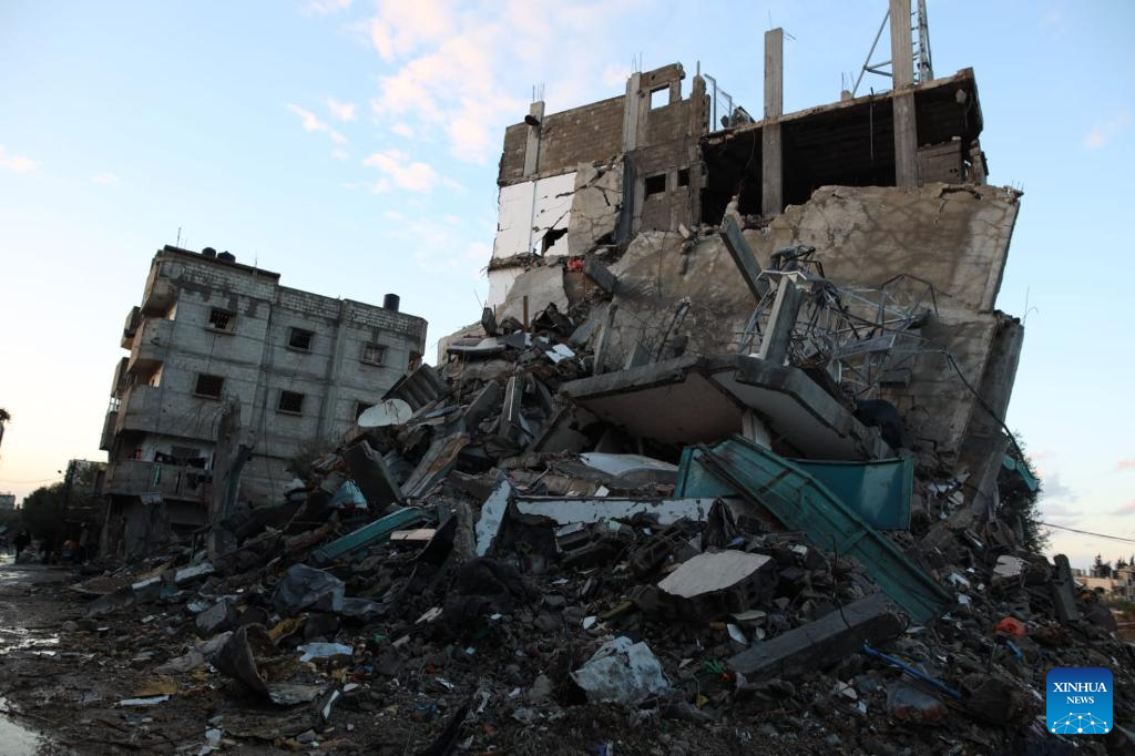 This photo taken on Jan. 27, 2024 shows the rubble at the Al-Maghazi refugee camp in the central Gaza Strip. The Palestinian death toll from the ongoing Israeli attacks on the Gaza Strip has risen to 26,422 since its outbreak on Oct. 7, 2023, the Hamas-run Health Ministry said Sunday.