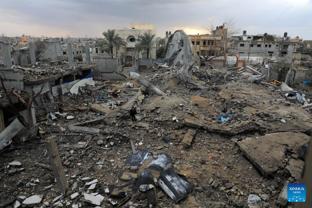 This photo taken on Jan. 27, 2024 shows the rubble in the southern Gaza Strip city of Rafah. The Palestinian death toll from the ongoing Israeli attacks on the Gaza Strip has risen to 26,422 since its outbreak on Oct. 7, 2023, the Hamas-run Health Ministry said Sunday.