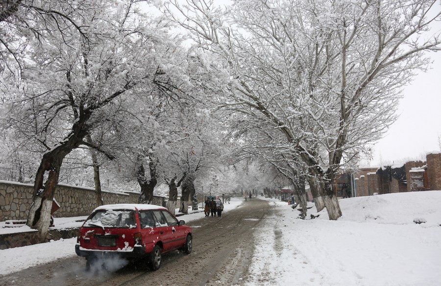 Photo taken on Jan. 28, 2024 shows the snow scenery in the Paghman district of Kabul, capital of Afghanistan. (Photo by Saifurahman Safi/Xinhua)