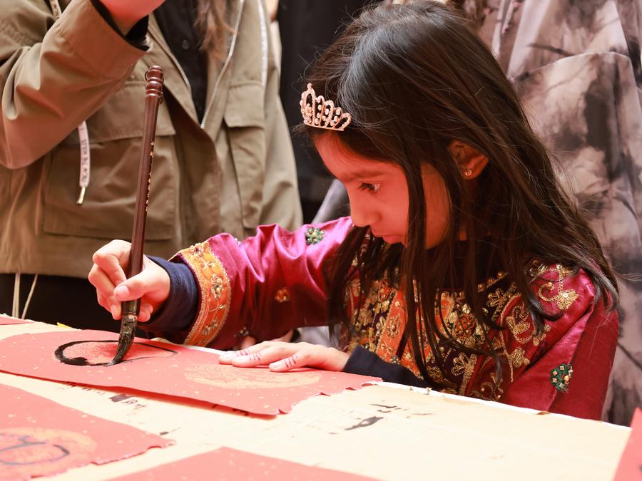 Crowded with enthusiastic visitors, the event held on Monday afternoon showcased the rich traditions of the Chinese festival, which falls on February 10 this year. The venue was adorned with red lanterns, couplets and various styles of Chinese calligraphy.