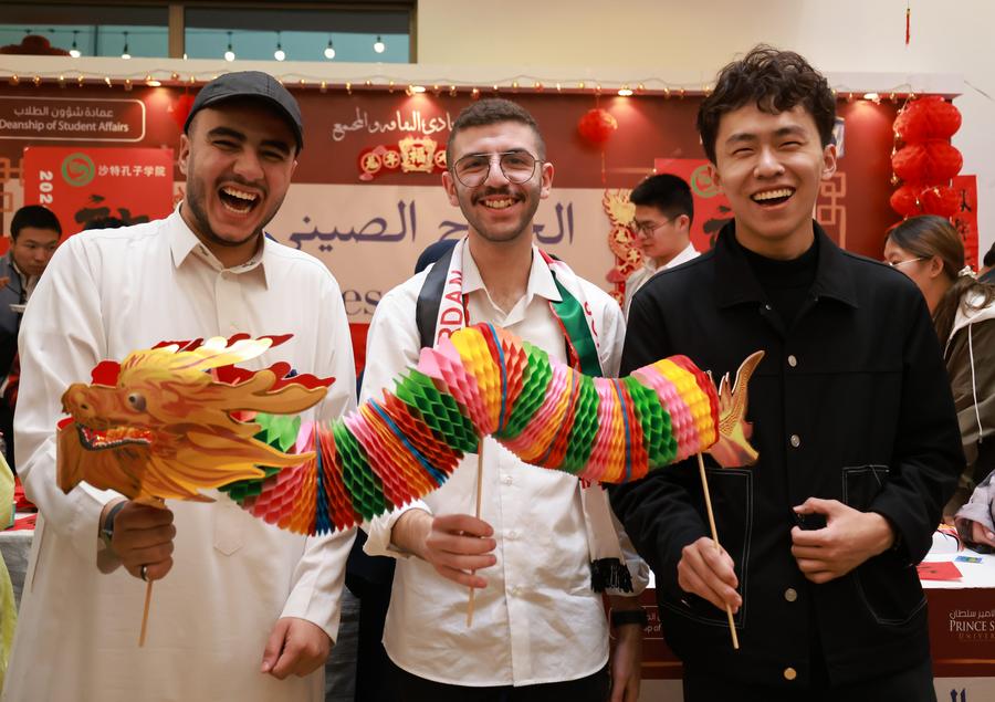 RIYADH, Jan. 30 (Xinhua) -- "I wish you good health, happiness and longevity!" The allegro in the Chinese language echoed in a hall at Prince Sultan University in Saudi Arabia's capital Riyadh, during a cultural event to celebrate the upcoming Spring Festival, or Chinese Lunar New Year.