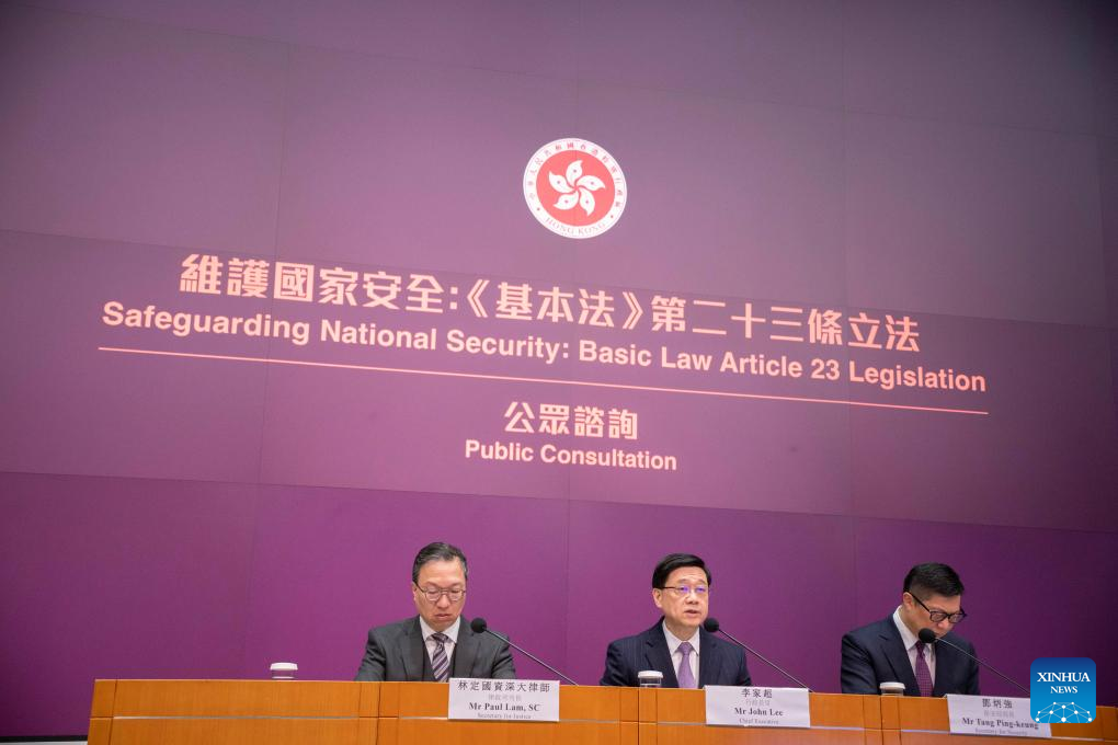 Lee made the announcement at a press conference on "Safeguarding National Security: Basic Law Article 23 Legislation Public Consultation" held at the HKSAR government headquarters.