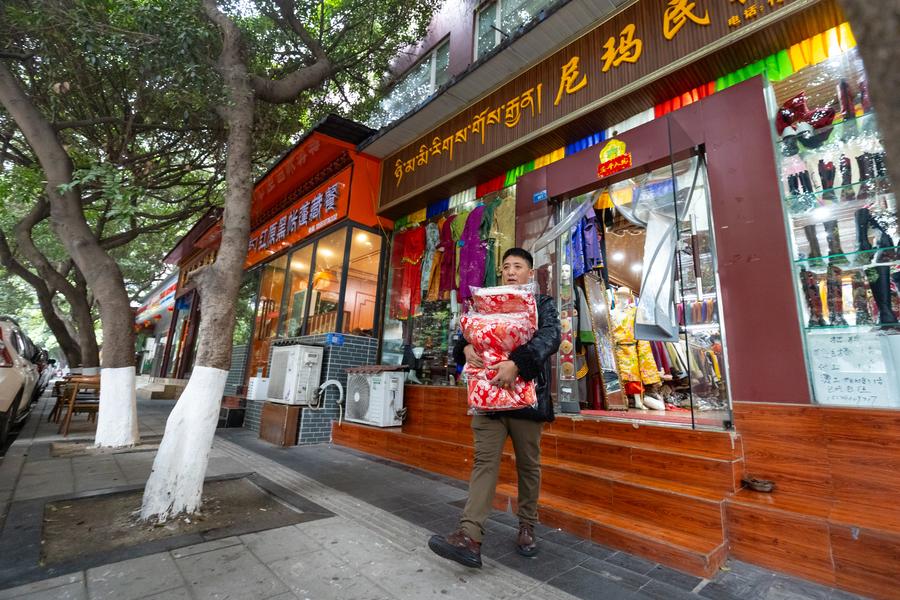 As they work and live in the city, people of ethnic minorities also bring along the culture and traditions of their hometown. An increasing number of Tibetan people settled in Chengdu leads to a swelling market for traditional Tibetan costumes. Consequently, Nyima Wangden's business is thriving, earning him over 200,000 yuan (about 27,800 U.S. dollars) a year.