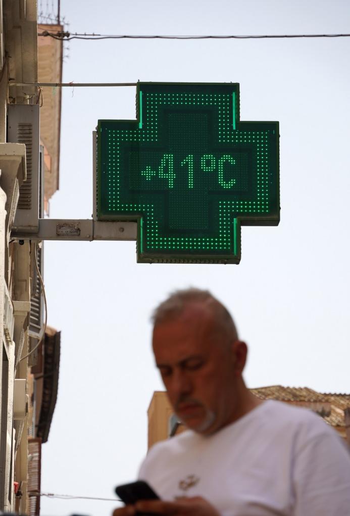 A thermometer shows 41 degrees Celsius in Rome, Italy, on July 18, 2023. (Xinhua/Jin Mamengni)