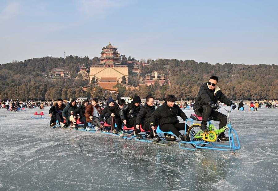 BEIJING, Jan. 31 (Xinhua) -- In winter, Kunming Lake of the Summer Palace, a UNESCO-listed World Heritage site in Beijing, becomes the city's major ice rink for winter fun.