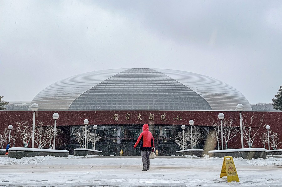 This photo taken with a mobile phone shows the snow scenery of the National Center for the Performing Arts in Beijing, capital of China, Dec. 11, 2023. (Xinhua/Bai Xuefei)