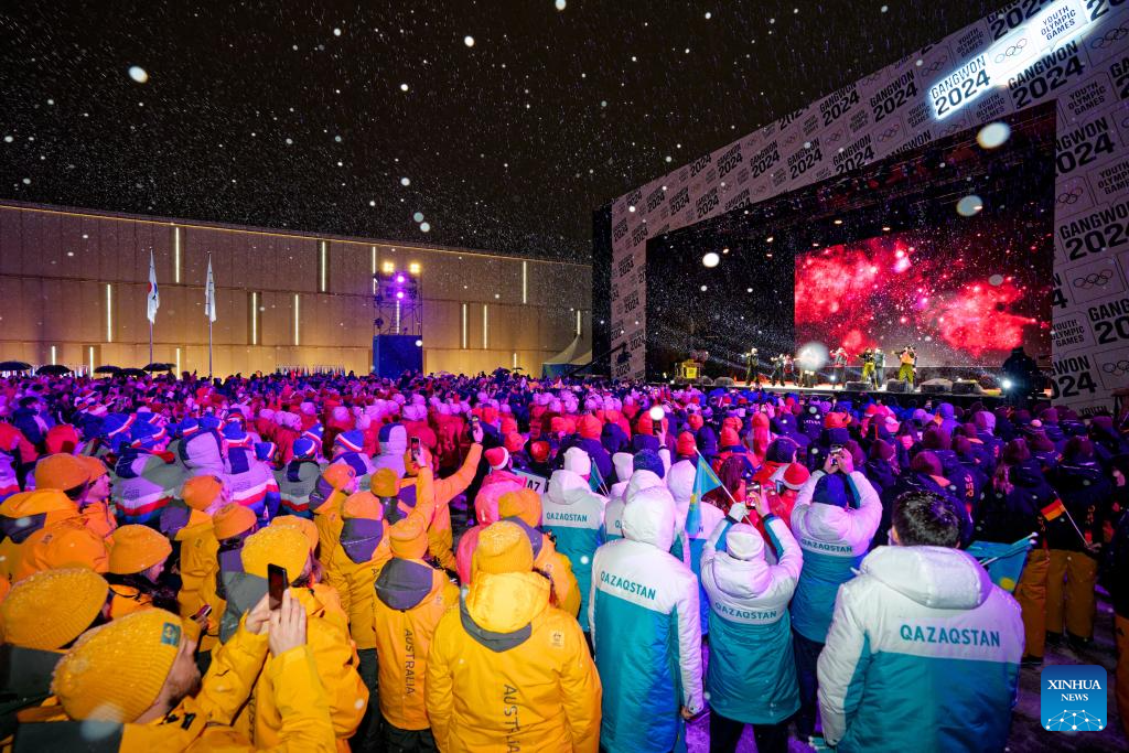 Members of delegations watch performance during the closing ceremony of Gangwon 2024 Winter Youth Olympic Games in Gangneung, South Korea, Feb. 1, 2024. (Xinhua/Zhang Xiaoyu)