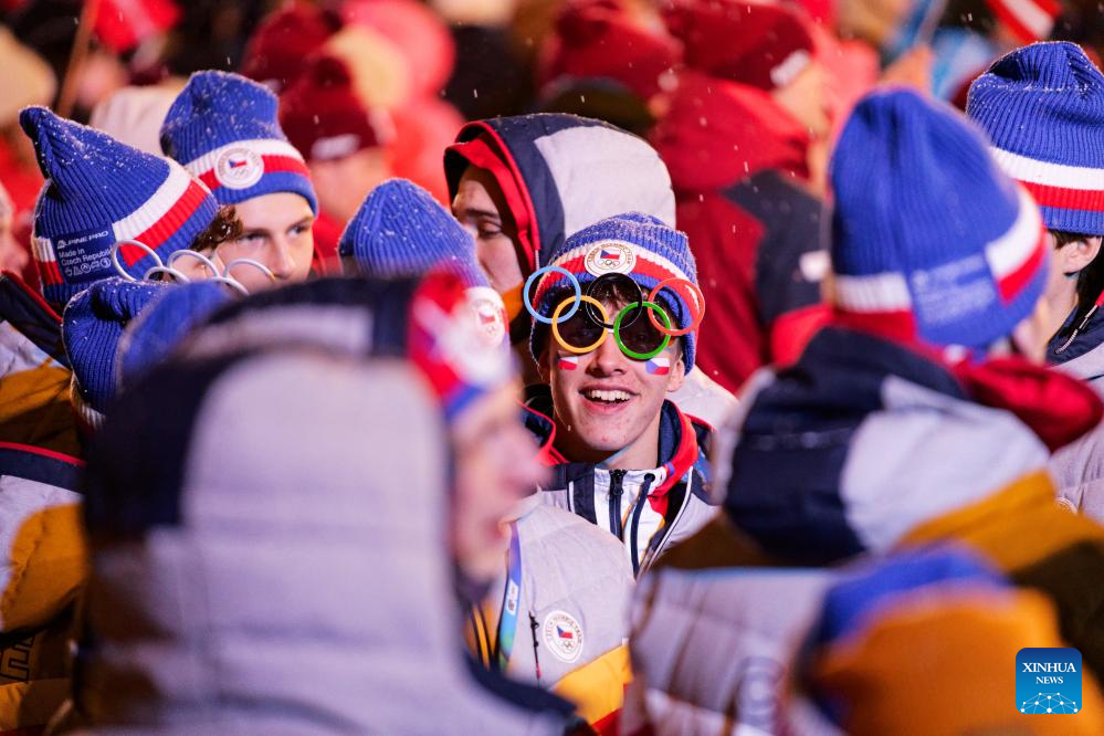 A member of the delegation of the Czech Republic is seen during the closing ceremony of Gangwon 2024 Winter Youth Olympic Games in Gangneung, South Korea, Feb. 1, 2024. (Xinhua/Zhang Xiaoyu)