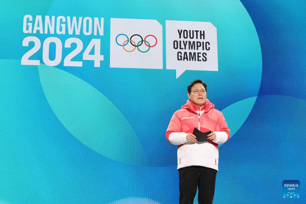 Choi Jong-ku, executive president of the organizing committee for Gangwon 2024, speaks at the closing ceremony of Gangwon 2024 Winter Youth Olympic Games in Gangneung, South Korea, Feb. 1, 2024. (Xinhua/Yao Qilin)