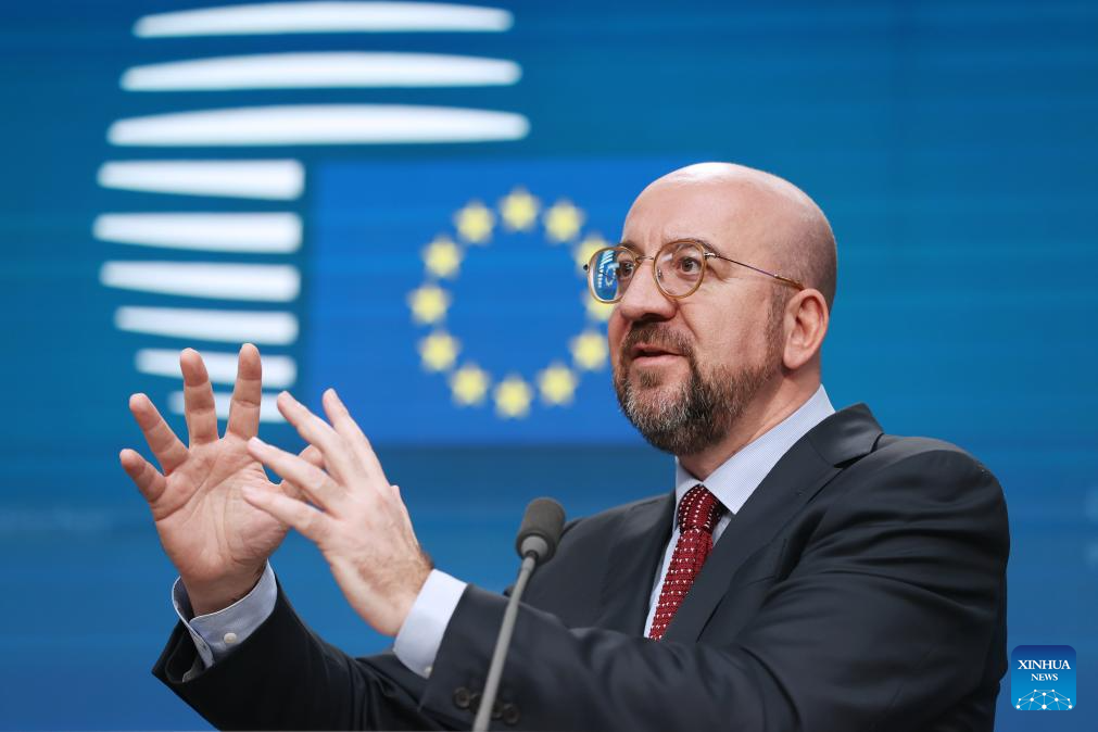 European Council President Charles Michel attends a press conference during a special European Union (EU) summit in Brussels, Belgium, Feb. 1, 2024. (Xinhua/Zhao Dingzhe)